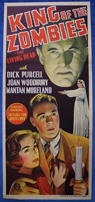 King Of The Zombies ( 1941 ) Australian daybill. A rare censorship rating of ''Censors Warning Suitable For Adults Only'' that I cannot recollect seeing presented in this form previously. Apart from the added Censors Warning wording, the rating using the same words used in the normally worded version of '' Suitable only for adults'' are arranged in a different way.