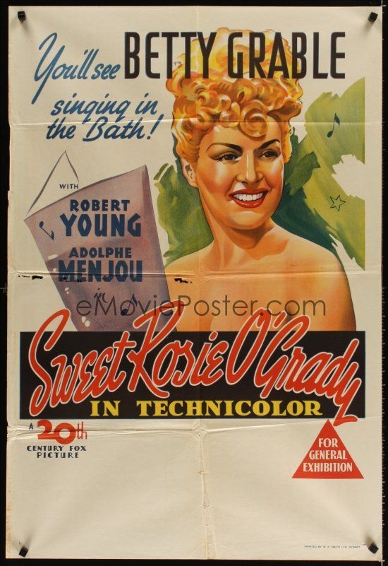 B ) Secondly the two latest examples of The Gang's All Here and Sweet Rosie O'Grady one sheet posters were released in Australia in 1943, the year after A Yank In The R.A.F was. Notice that the two Australian poster designs are barebones posters with the main female stars images only appearing on the poster. The poster designs don't resemble the below original U.S.A. one sheet posters at all. It would seem to me that little to no artwork was received in time from the U,S.A. for the Australian poster artists to work with.