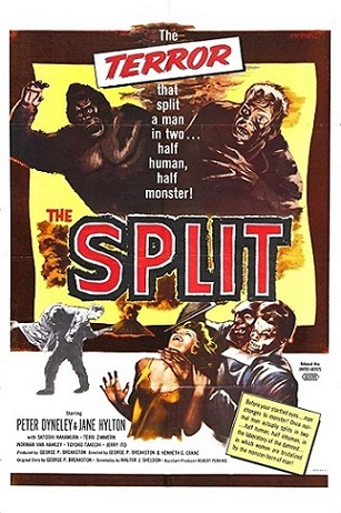 At last a daybill image has surfaced for The Split. The film was released in Japan in 1959 and in the U.S.A. under the alternative title of The Manster in 1962. A heavily censored version of the film was released in Australia in 1962 under the title of The Split and the asleep at the wheel Australian daybill version appears above. Did United Artists Australia not receive any overseas artwork to work with or was Australian censorship perhaps the problem? The bloodied hand looks feminine to me.