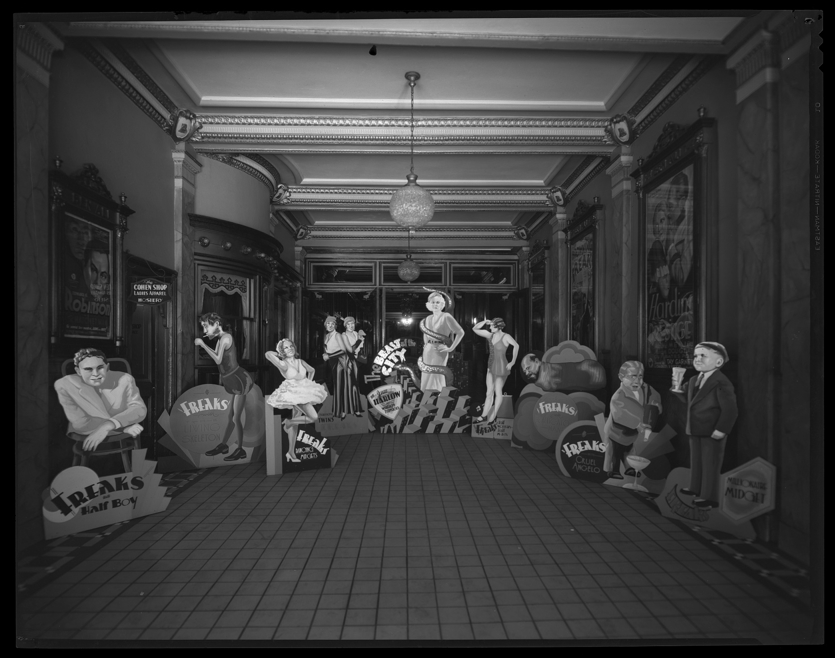 In this great display in a cinema there are four films advertised with standees and posters that are viewable to human eyesight in the image. Two are immediately known to the person viewing but the other two aren't. There is an obvious clue to narrow down the year. Sorry the image is so dark but that shouldn't stop anyone working out the titles as I successfully managed to do so. The posters are on the wall in glass displays. Good luck.