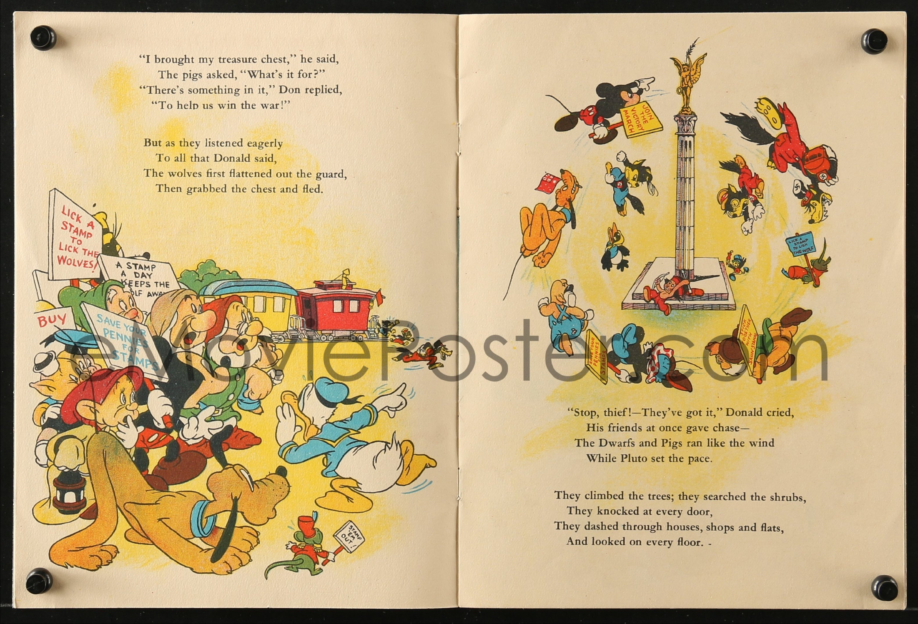 The ''Lend to defend - buy war savings certificates'' tagline used on Columbia Pictures daybills and one sheets, was also added to an Australian newspaper advertisement for a RKO Radio release of Walt Disney's Snow White And The Seven Dwarfs in 1941.
