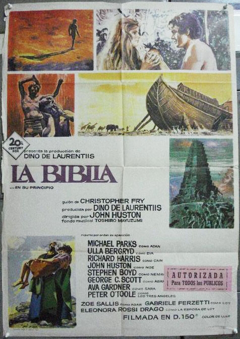 The Bible... In The Beginning  ( 1966 ) Spanish film  posters. What is interesting about these two posters is that the film was released worldwide by 20th Century Fox, yet the above poster on the left contains a Radio Pictures logo. This logo was used by RKO Radio Pictures from the late 1920's and early 1930's. This logo of course was replaced then by  the use of an RKO Radio Pictures titled logo. RKO ceased operations in 1959.