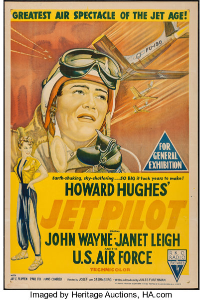 • A John Wayne below par coloured poster is Jet Pilot ( 1957 ). I am of two minds with Passage To Marseille ( 1944 ). Do the red and yellow colours work? I am not sure, but some tonning down of the red colour I am convinced  would have made it a better poster.