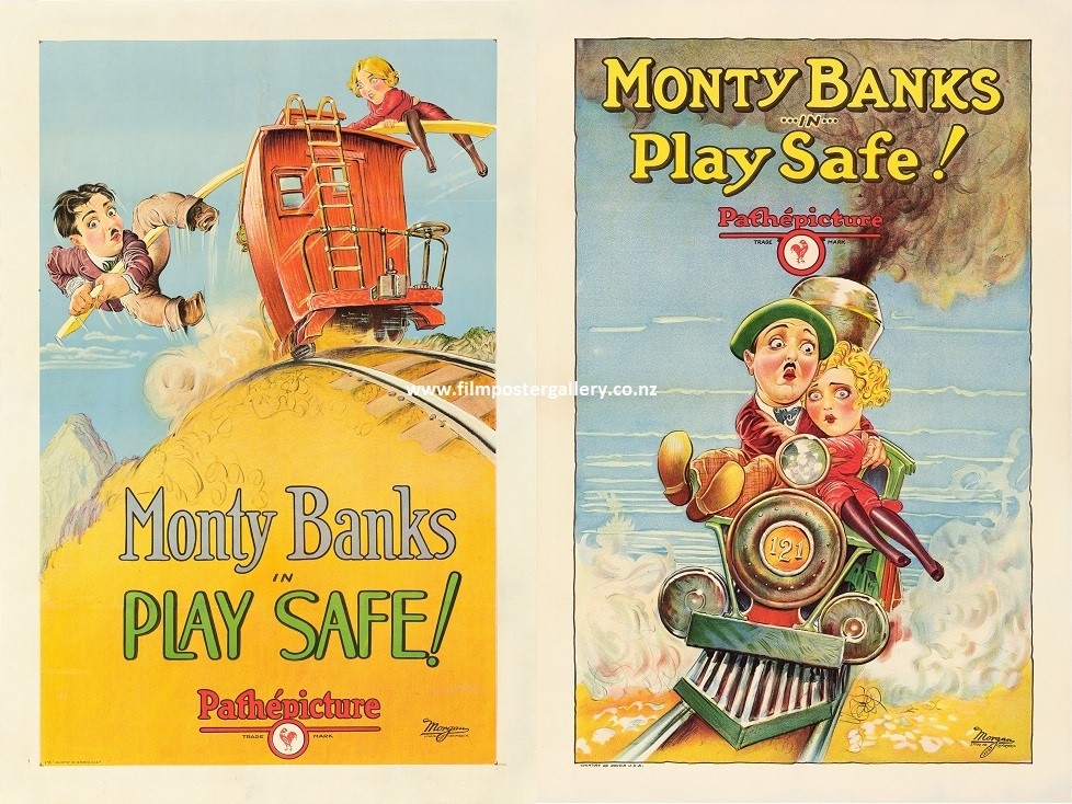 US One Sheet pairs for the 1927 Monty Banks production 'Play Safe' and 1928 'Companionate Marriage'.