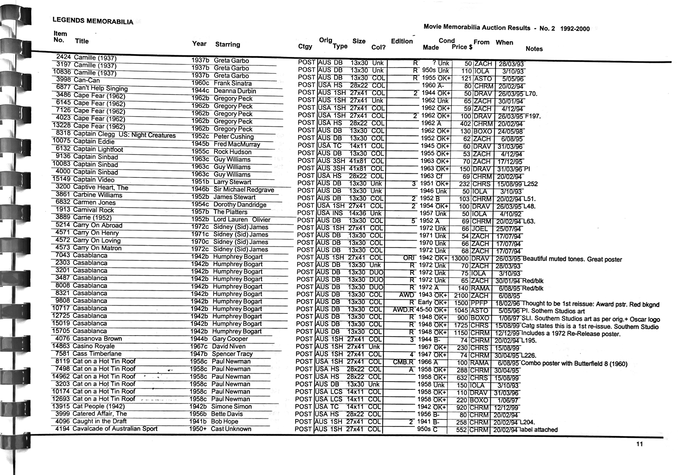I have just completed an extensive searc,h but at this time have been unable to locate the original poster catalogue from the 7th of November 1998, auction. This is a pity but I will continue to try and locate it in the future.