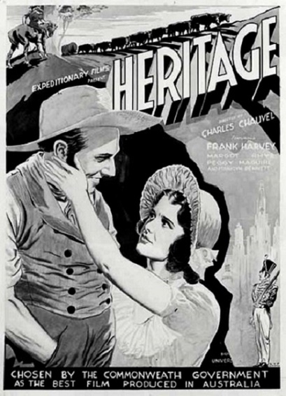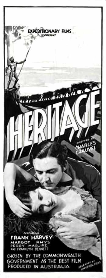 Heritage ( 1935 ) Charles Chauvel directed film with the above 24 sheet being to my knowledge the only image of an Australian poster to be definitely identified from the list of printed posters listed above.
