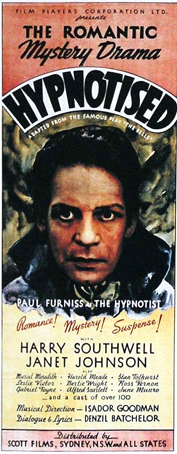 Later a re-edited version running only 56 minutes running time was released by the little known film distributor Scott Films under the new title of Hypnotised. It would appear the film only received a few country screenings in Australia. The first screening I could locate was at the Danceland Theatre in Moree East N.S.W. playing for two nights surprisingly as the main attraction in 1937. This was the year the film appeared in England with the altered title of Flames Of Conscience. 1937 could be the year that the film was fiirst released in Australia, The only other Australian screening that I could locate was in 1946 when the film played as a supporting attraction to Mayerling ( 1936 ) another independently released film at the Memorial Theatre Kyogle N.S.W. over two nights in 1946.
