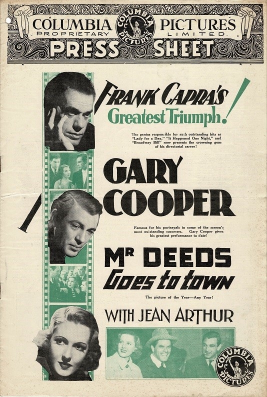 Mr. Deeds Goes To Town ( 1936 ) Australian press sheet.