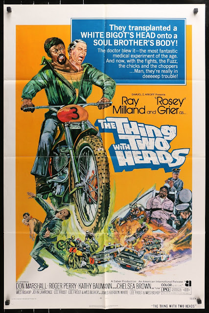 This is my prize of the current batch o' posters...and is a poster I've wanted for years. THE THING WITH TWO HEADS is not a very good movie (and I just re-watched it a few months back)...but what a concept! Too fab! I love it and am thrilled to have such a cheesy, sleazy schlock film poster. Zowie!