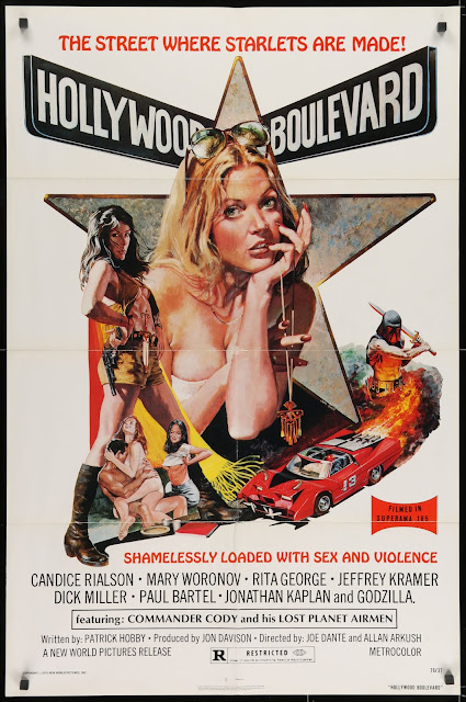 Do I have this already? I know I have the poster for VAN NUYS BLVD, but this one? Hmm. Filmed in Superama 185...whatever that might have been. With a great exploitation cast including Candice Rialson, Mary Woronov, Paul Bartel, Dick Miller and "Godzilla"! Ha! Cool poster, too.