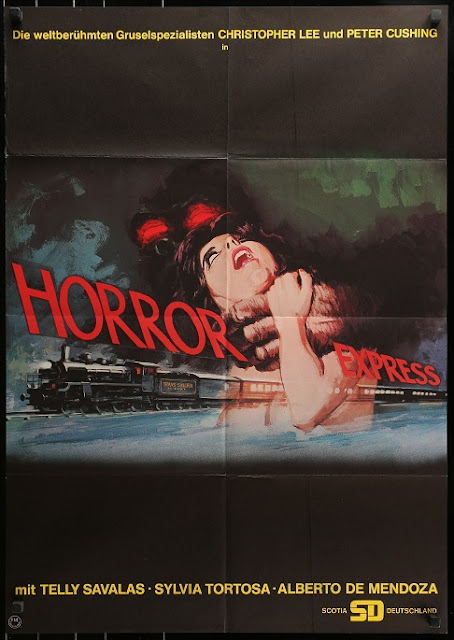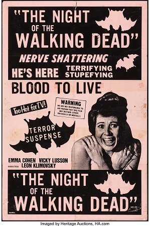 I paid way, way, W-A-Y too much for this poster. It is stained and torn and in pretty rough shape. Why bother? Because I had NEVER seen this poster before. Despite the title riffing on NIGHT OF THE LIVING DEAD, this obscure Eurosploitation cheapy is about vampires instead of undead zombies, apparently. I must have been in a special kind of stupid fugue state when I bought this...