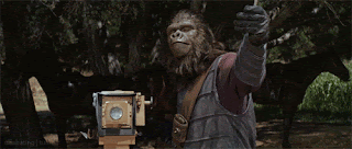 I have ALL of the posters for the PLANET OF THE APES films (from the original to present day), even though some of the movies (like this one) just didn't do it for me. (Yawn). I already have a WAR poster---but it is a close up of the lead ape on horseback (at the very center of this larger scale poster). I may have this poster as well (probably do), but wasn't sure. The tagline reads "witness the end"--is this the last one? We shall see.