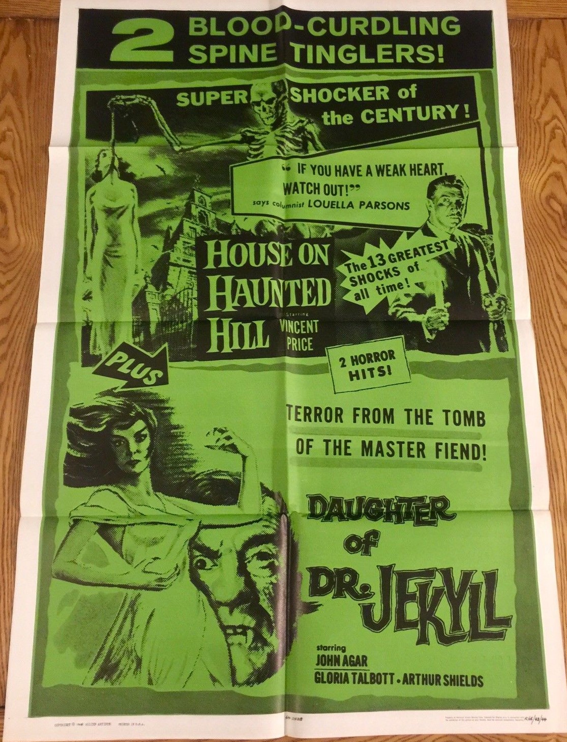 I will probably never own a HOUSE ON HAUNTED HILL...so this re-release double feature poster will have to do. (I already have a poster for DAUGHTER OF DRACULA...but, whatever...)