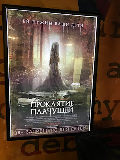 Upon arrival home, I was happily surprised to see the same poster...in English (well, mostly) for the new horror flick LA LLORONA, which I had no idea was even coming out. I quickly snatched up the poster as I had been fascinated by what it could be since seeing it in St Petersburg. Of course, now I've actually seen the movie and...well, it's okay, but nothing new or original. Just the same ol' horror schlock from THE CONJURING people (think THE NUN or INSIDIOUS). Oh well... Still a cool image.