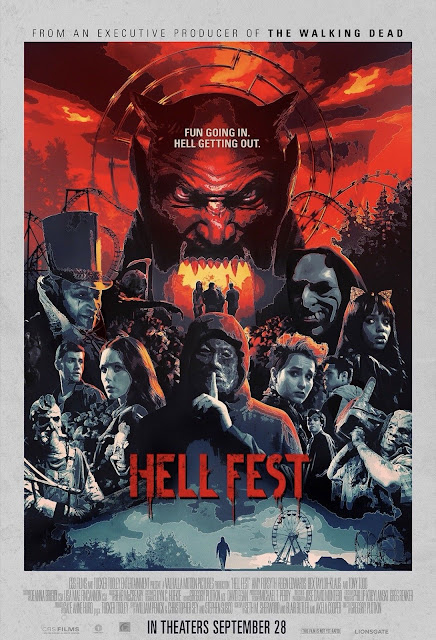 The advance poster was nice, but I really dig this final version of the poster. There are lots of great elements from the film here. It was great fun to see TONY "Candyman" TODD in a cameo part as well (He's the guy on the left in the top hat). Not a great film, but interesting. It was kind of like a throw back 80s slasher, set today and inside of a big Halloween multiple maze attraction (like Universal's HALLOWEEN HORROR NIGHTS or KNOTTS SCARY FARM---but off in the woods somewhere).