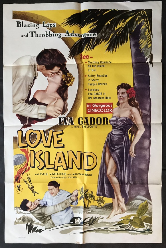 This was probably a stupid purchase--and I got it super cheap. If nothing else, i can put it in my tiki room---if I ever have a tiki room. Why did I buy it? Although I have never seen it, the fact it stars Eva Gabor as an island native (probably the only native girl with an inexplicable Hungarian accent) screamed out high camp to me...kind of like Zsa Zsa being the only Venusian with a Hungarian accent in QUEEN OF OUTER SPACE.But this flick apparently features BLAZING LIPS and THROBBING ADVENTURE! Oh my!!!