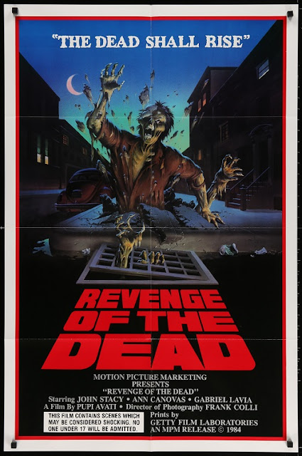 Also known as ZEDER, this poster art is very cool and suckered me into renting this flick back in the VHS days. The film itself is AWFUL! I don't really think there was even a single zombie in it. Utter crap---but, like I said, great zombie art on the poster. Apparently the Code Red version of the film, released on disc as ZEDER, is uncut and the REVENGE OF THE DEAD version that was released here theatrically and on VHS was heavily edited. What was missing, I could not say...but it is doubtful i'll bother with it ever again (unless I become a hopeless insomniac).