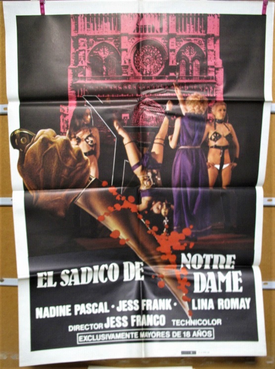 I have long wanted this poster for the Umberto Lenzi giallo. I have the other version---but this version is the version to get. In case you are not familiar with the movie, a bus load of American tourists (I want to say they are in Barcelona, Spain) are being killed one by one by a killer in a red robe and hood...by gouging out their eyeballs! (If I were on the tour, I'd have split after the first or second murder! Jinkies!) I had heard bad things about the film before I saw it. However, when I finally tracked it down on disc, I found it engaging and interesting. For a giallo, I thought it was pretty good. This tri-folded poster sure is a winner!