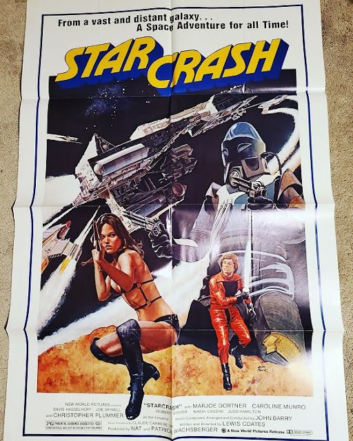 I know this flick is not all that great. I actually do not remember all that much about it (it's been YEARS since I've seen it). Frankly, the only thing I truly do remember is the poo people. Yes, you heard me. Poo people (as in people dressed like giant turds!) Obviously this movie is as clASSy as they come. NOT! FLESH GORDON MEETS THE COSMIC CHEERLEADERS is the 1990 sequel to 1974's X-rated FLESH GORDON. I don't think many people are aware of this sequel. In fact, I don't even think all that many people are aware of the original these days. Zowie! Both films were, in my opinion, missed opportunities. The original FLESH GORDON one sheet is GORGEOUS, though. (I also have the Spanish and the Italian posters.) I had long wanted the one sheet for the sequel to go with it, but I am not even sure it had a theatrical release...at least stateside (and I DO have the US video release poster). I came across this one sheet (sold out of the UK) and am thinking it is an international one sheet--possibly a video poster? Maybe not. I do have a quad with different art for this flick. Anyway, I came across this one and, even though it was far more than I wanted to pay (for the shipping alone), I snatched it up.