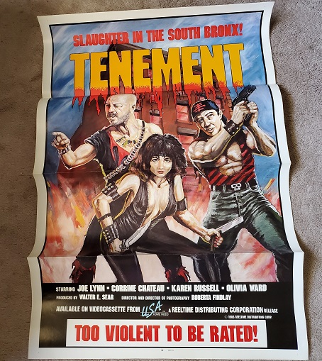 I already have a copy of this...but it and the one below were "free" with another purchase. This is a video one sheet...and it has been re-titled from the theatrical release as GAME OF SURVIVAL. Grindhouse legend Roberta Findlay directed this sleaze epic. It was released not so long ago on BluRay with the combined title TENEMENT: GAME OF SURVIVAL. Rolled tri-fold.