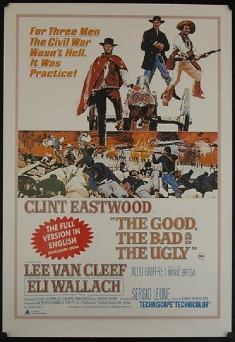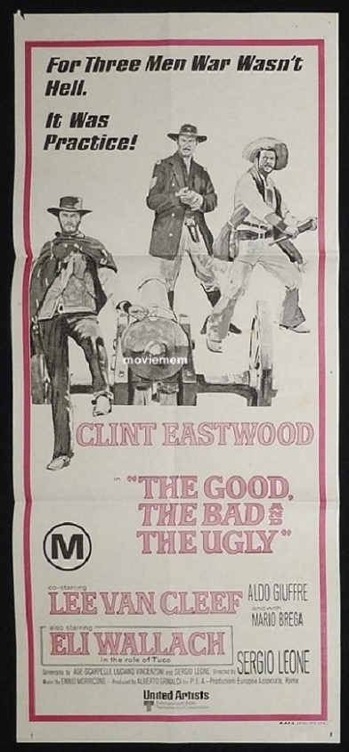 Firstly the artwork is a combination of two different Clint Eastwood western films The Good, The Bad And The Ugly and Hang 'Em High. Although he wore a similar hat in the two films the one featured on the N.Z. daybill appears to me to be the one he wore in Hang 'Em High which is slightly different than the other one that he used in The Good, The Bad And The Ugly.
