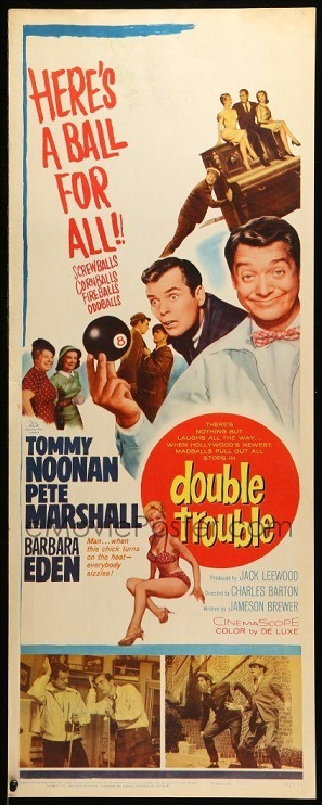 The film was released in Australia in 1961 as Double Trouble in a black and white version. The daybill colour credit has been covered over on the above daybill poster