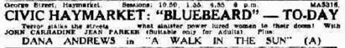 Yes the vast majority of PRC films screened in Australia were programmed at the bottom half of a double bill. There were a few exceptions though where some titles were programmed of the top of a double bill. Examples of Bluebeard (Sydney) and The Black Raven (Hobart) appear below.dedeposter said:I assume they would have been double features? The 'very' bottom of the bill?