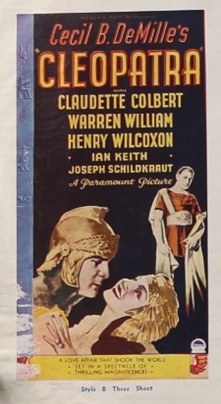 This Australian image of a style B three sheet Cleopatra ( 1934 ) poster from Paramount Pictures is from An Australian press sheet being currently auctioned on Bruce's website. A style A three sheet image, probably due to having insufficient available space, doesn't appear on the press sheet.