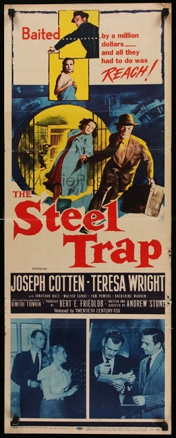 The Steel Trap ( 1952 ). U.S. insert poster and an Australian newspaper advertisement from 1953. 20th Century Fox Australian daybills designed by W.E.Smith around this time were limited in detailed artwork, so the ad design possibility could indicate what the daybill may look like.
