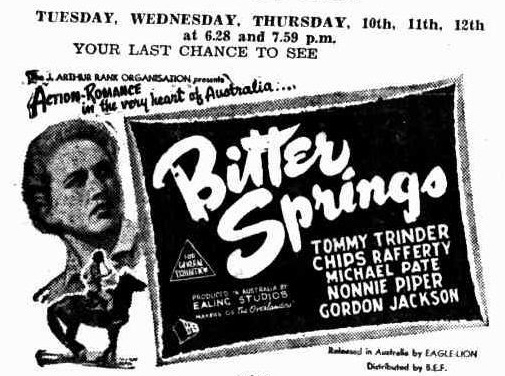 Bitter Springs ( 1950 ). Second printing australian daybill, Australian ad blocks and one used in an original 1950 newspaper advertisement.