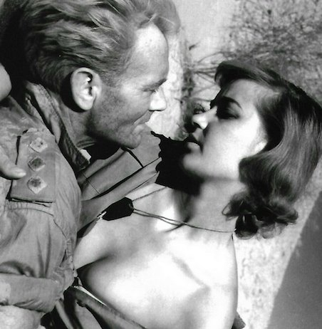 Pinterest says regarding this image - '' although this shot doesn't actually appear in ''Ice Cold In Alex'' Sylvia Syms is still pretty hot in the film. She has Johnnie Mills full attention''. It goes on to say- '' Sylvia Syms and John Mills in ''Ice Cold In Alex'', Dir, J. Lee Thompson. This scene was not included in the final film, as it was deemed too suggestive with too much cleavage.