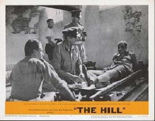It certainly is The Hill ( 1965 ). The two Sir's clue referred to Michael Redgrave and Sean Connery. Michael Redgrave was a Sir at the time and billed as such on the below quad poster. In my original posted image and the complete version I have now included he appears front and centre, with Sean lying on the bed. Sean Connery was knighted in 2000.