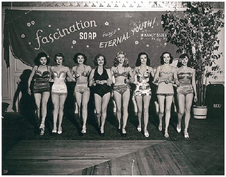 The following image is from Joan's debut British film Lady Godiva Rides Again (aka Bikini Baby in the U.S.A ) from 1951. At the young age of around eighteen she was unbilled in the film playing a beauty contestant, seen above appearing on the far right of the image. Also in the lineup are Diana Dors and Anne Heywood.