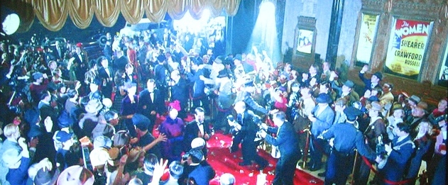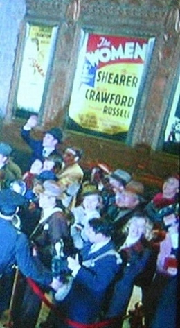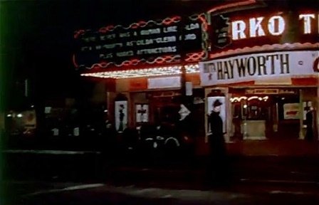 Correct. The film being advertised in the image is The Lady From Shanghai, another Rita Hayworth film from the same year 1947. It appears to me that the image outside the theatre is of Orson Welles wearing his sailor's hat that he wears in the film as pictured below..