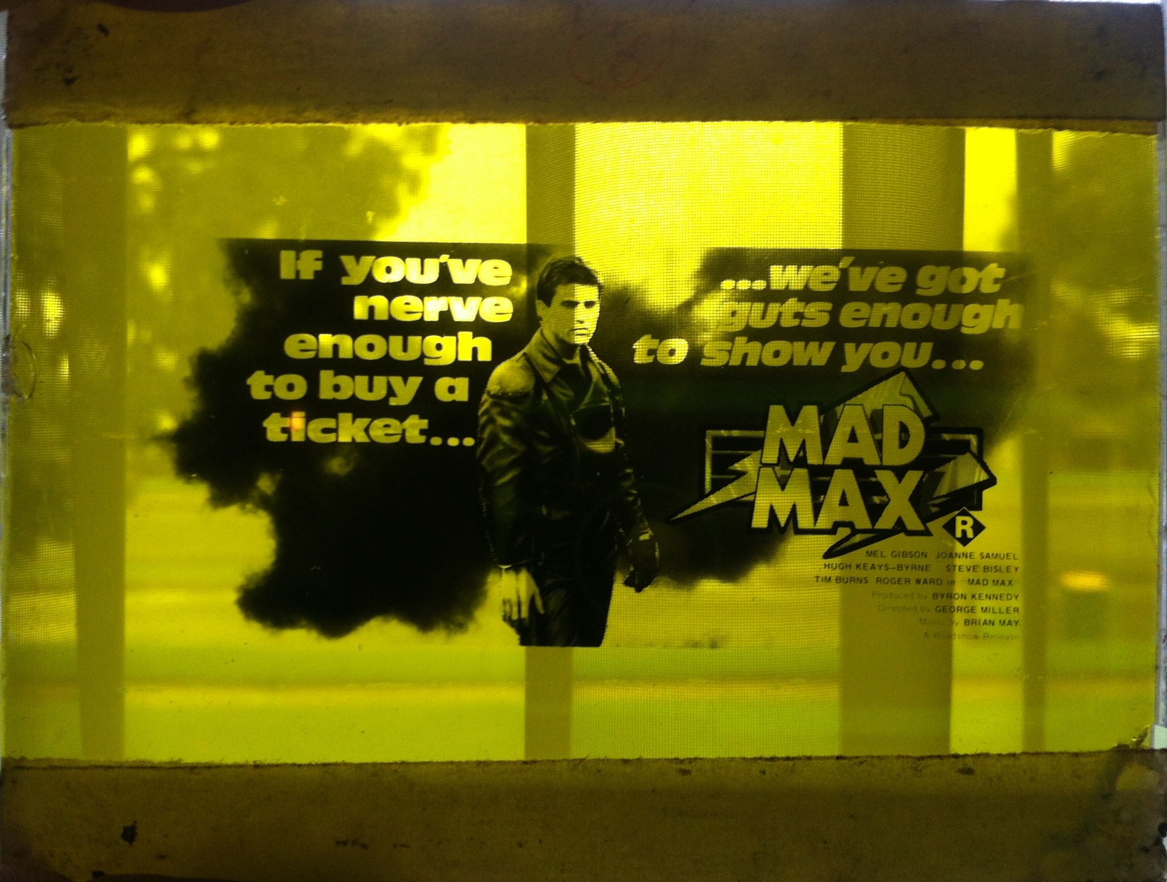 Was researching a Strangers on Train daybill and stumbled onto this thread. Had to think hard to remember my password! Tricky time around late 1970s / early '80s, as they were transitioning to gloss paper daybills, and reducing the length at same time, possibly due to equipment upgrades (only a guess). You definitely can't date Aussie posters by matt first, then gloss etc. There are countless examples of posters being printed on both types of paper around this time. For all we know, MAPS may have had two presses running side by side. One was being fed matt, the other gloss. BTW, orange MM was nearly $AU10K at the time with conversion. Not many 1970s Aussie posters make that! Charlie knows best MM one sheet to buy. I have some info on Rocky Horror 1980 re-release b&w posters. Not sure when will have time to post. Another slide - drive-in type. One above is actually black / clear, just appears blue hue.