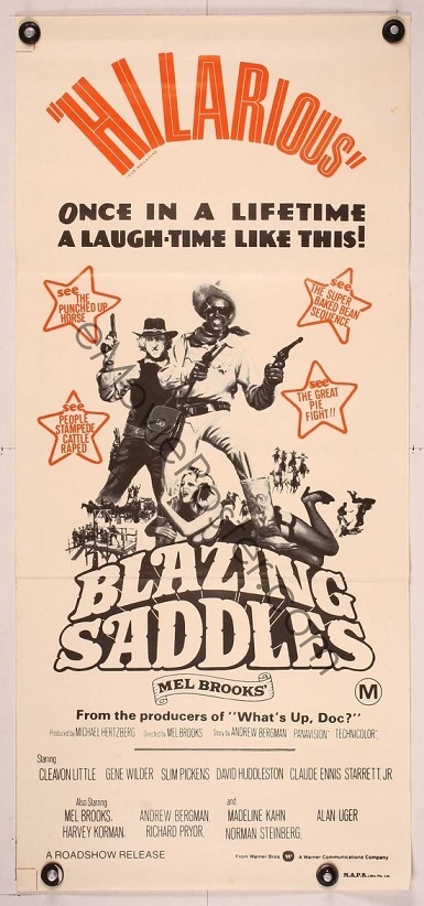 His Blazing Saddles daybill is interesting, and nicer than the more common variation. The title and the promos on the side seem to be original colour on the poster, but i think someone may have added some texta to Cleavon Little, Mel Brooks' name and the rating. I think i have four different styles of this daybill. I should also take a pic of the reat of the poster. I'll add that later