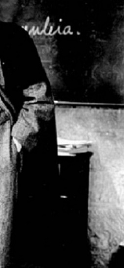 The black and white image just happened to be the only one located that had any suitable blackboard writing material available that could be used.