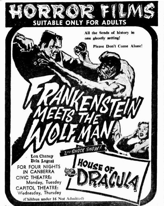 A 1963 Australian newspaper advertisement that was placed for official Australian wide 1963 re-release screenings in Canberra, A.C T.