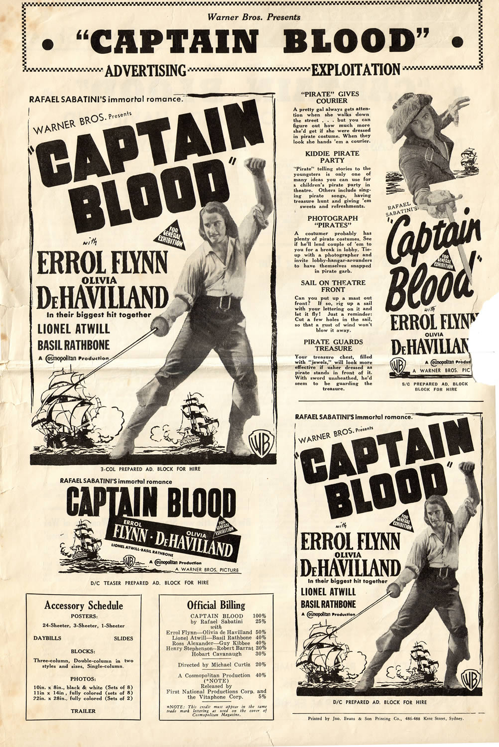 Australian newspaper advertisement placed for original screenings commencing at the Civic Theatre Newcastle, N.S.W. on September 24, 1938. Note the style of Warner Bros. logo appearing on the advertisement.