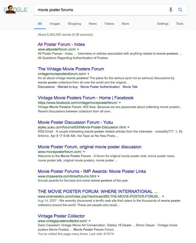 Top 5 actual ranking for the search term: "Movie Poster Forum" (the rank based on the search terms used not the results in Google):