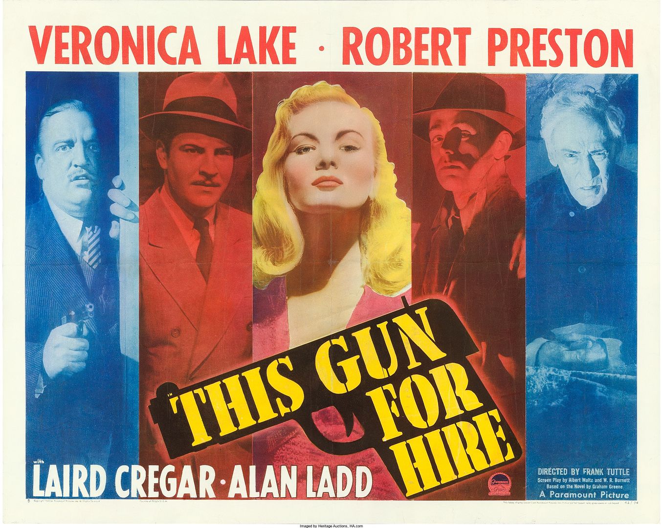 Heritage is pleased to present the Style B half sheet for this iconic film. Touchup was applied to the folds, small chips in the top and bottom border, Lake's face, and the white lettering at the bottom. A bit of horizontal and vertical creasing is still visible. The result of careful restoration is a highly attractive poster that will surely enhance any collection. Fine on Paper.