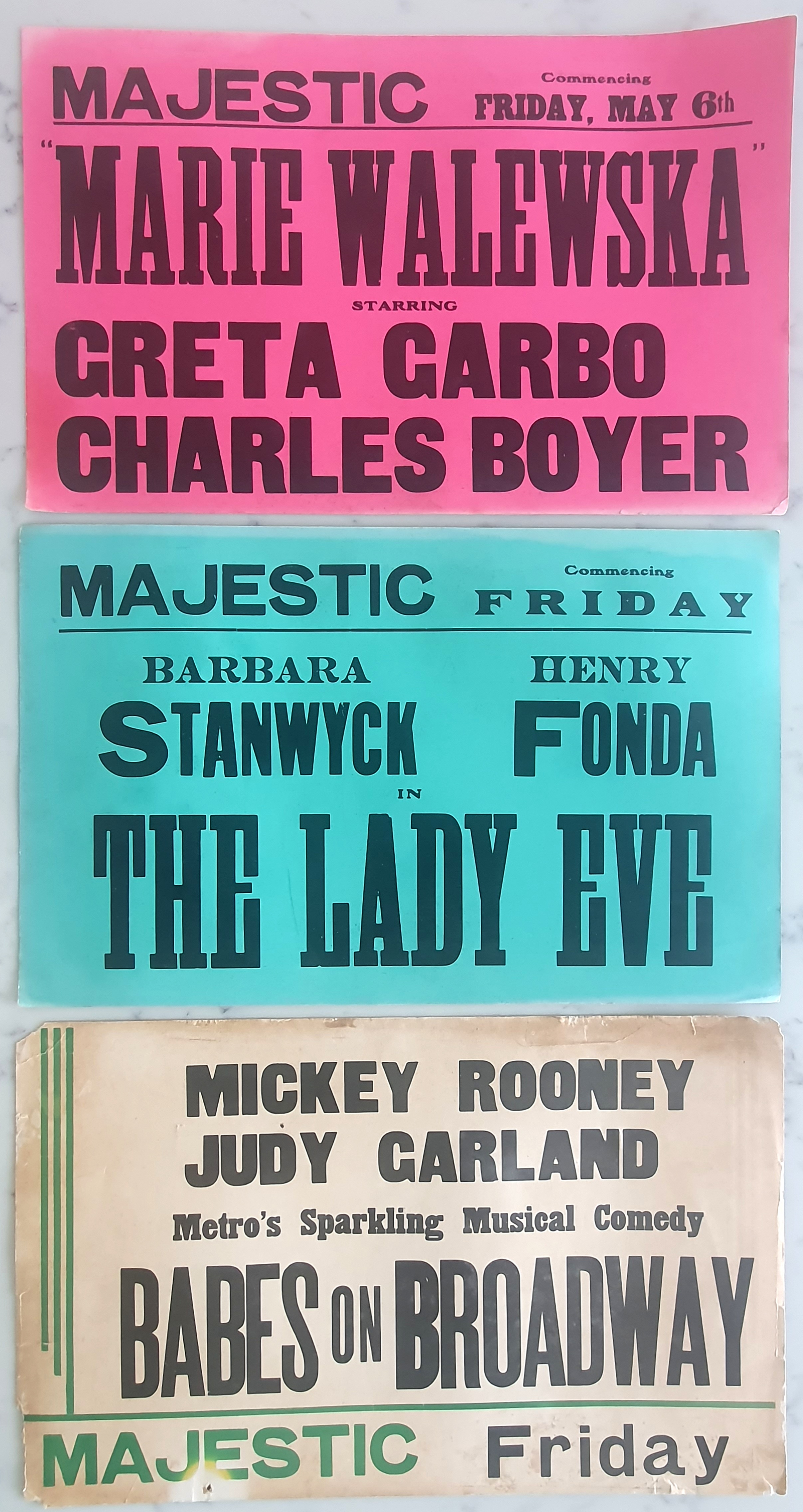 From a local theatre, double sided early 40's cards (12 1/2" x 20"), likely used in leu of official material.