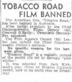 Understandably well remembered then. Tobacco Road from 1941. This major studio John Ford directed film was originally banned from public exhibition in Australia in 1941,
