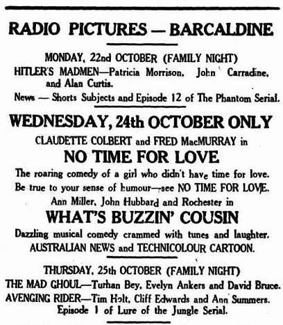 Secondly The Mad Ghoul advertised as being part of a family night screening is rated as being '' A Horror Film Suitable Only For Adults''. Of course a horror film was well suited for a family night screening.