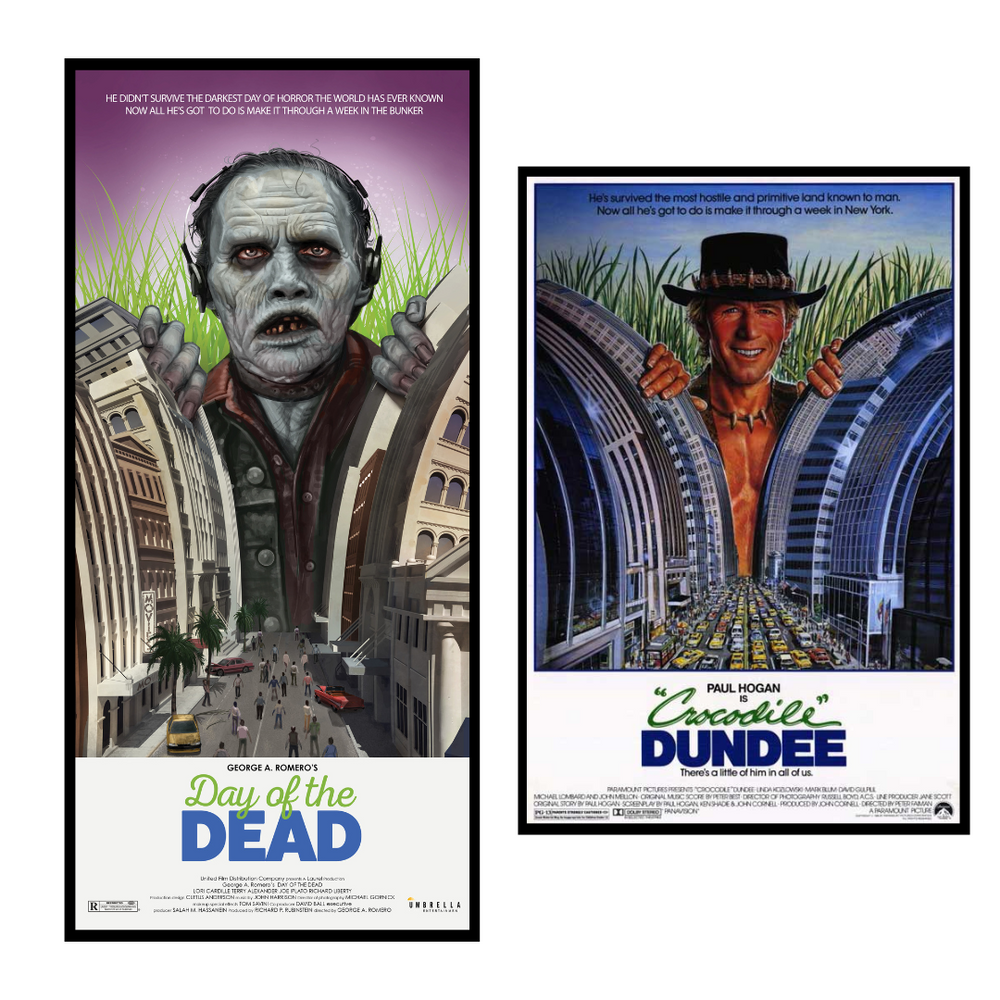 'In a homage to Ozploitation, this Halloween we have revamped 3 Horror classics with "G'day of the Dead" Ozploitation variants. Featuring all new custom art, The Texas Chainsaw Massacre has been styled as Wake In Fright, Hellraiser styled as Turkey Shoot, and Day of the Dead styled as Crocodile Dundee'