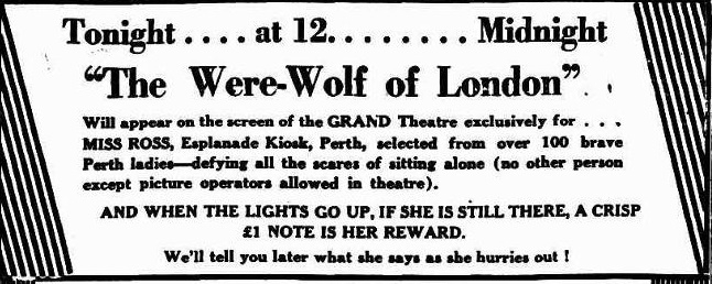 Well worked out. It is indeed Werewolf Of London from 1935. First Ves was being creative with Apocalypse Now, then followed by Bruce being creative also. A nice music video and catchy song . (Everyones,/Trove/ NFSA) An Australian newspaper advertisement that was placed in Perth WA on Friday September 6, 1935.