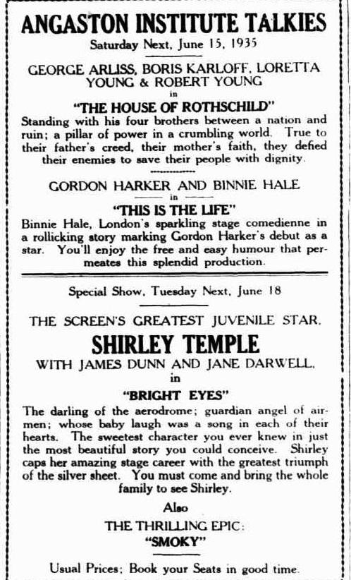 Have a think about the above. There were numerous screenings in Australia in 1935, including only a few examples that are shown above for the Bright Eyes and Smoky double bill.