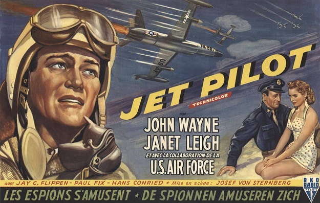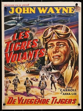 5 ) Is was the large John Wayne image that I had recognised was from another of his films that had me look into the poster in question further. The Film was Jet Pilot ( 1957 ). An original French poster appears to have been the inspiration for the Belgian artist to use it on The Flying Tigers re-release poster artwork.