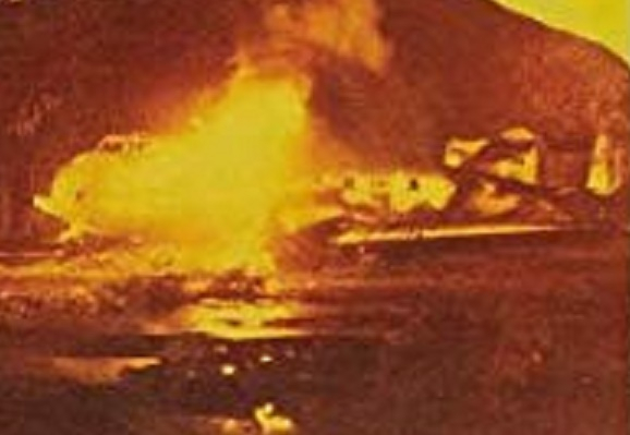 2 ) The exploding plane is too modern for 1942. The actual plane used in the film on fire is shown from a scene below.