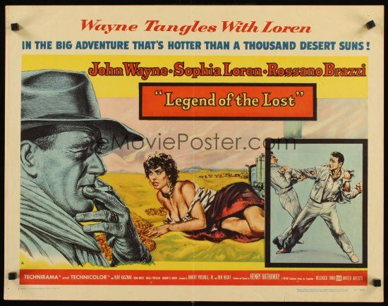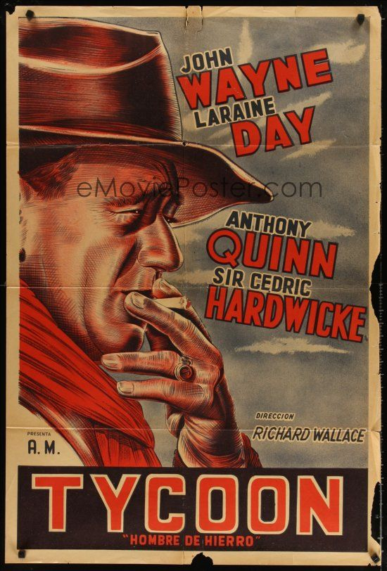 The Tycoon Argentinean poster was a re-release and most likely happened in the 1960s. The above 1957 U.S.A. half-sheet of Legend Of The Lost has the exact John Wayne image that was used by the Argentinean poster artist when designing the Tycoon re-release poster. With the original distributor RKO Radio now out of business in the 1960s there would have been a strong chance that no original 1940's first release material was made available to the poster artist, so this is what he came up with.